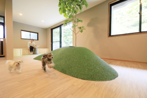 館内には愛犬も温泉を愉しむことができる貸切風呂をはじめ、ドッグランやフォトスタジオを完備。お食事ももちろん愛犬と同伴OKで、周りのワンちゃんが気にならないようレストランは半個室仕様となっています。